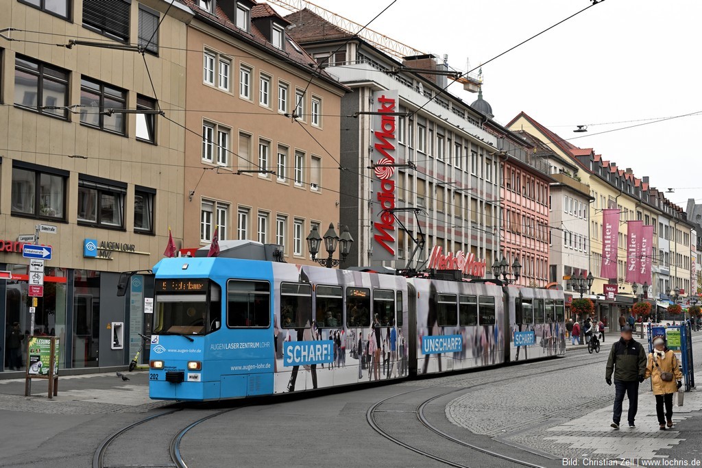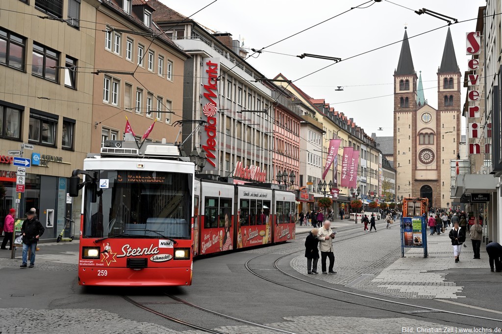 Die Straßenbahn verbindet auf fünf Linien die Bezirke der unterfränkischen Großstadt.
