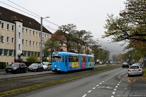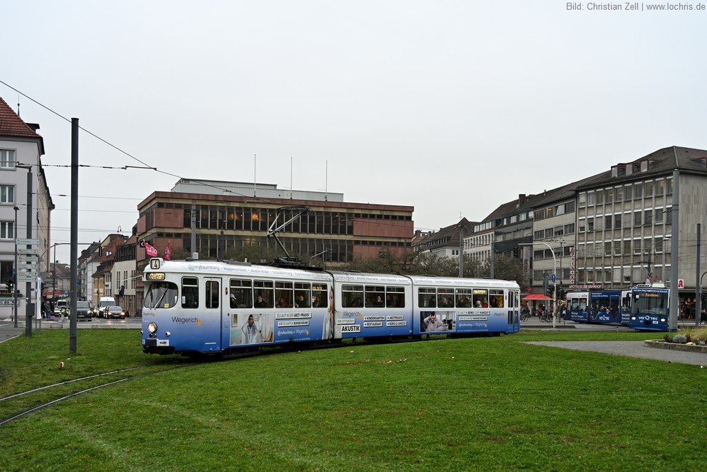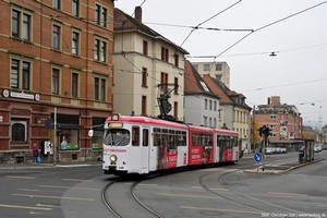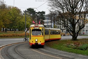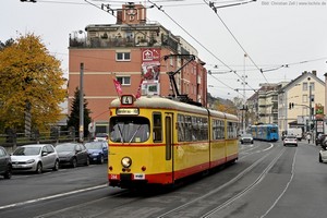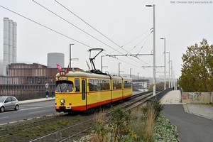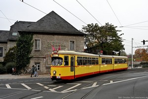 Düwag GT6, später mit neuem Mittelteil zum GT8 umgebaut, Baujahr 1968.