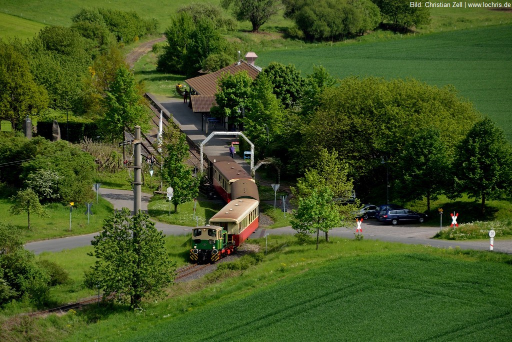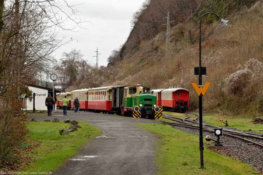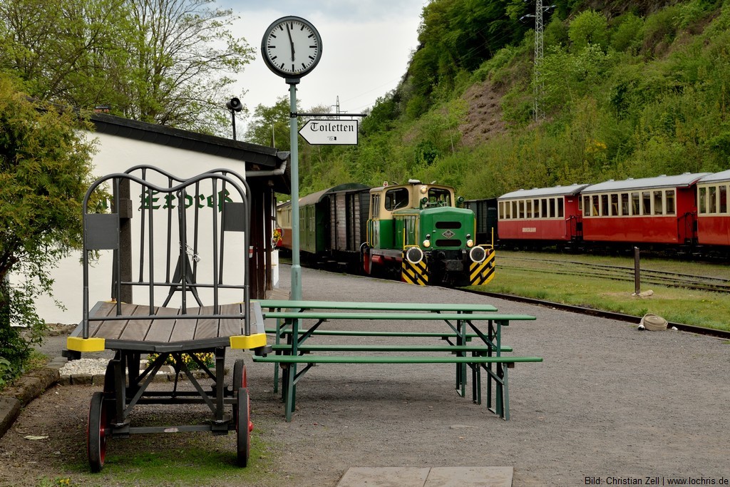 Der Bahnhof der Brohltal-Eisenbahn liegt direkt oberhalb des DB-Bahnhofs Brohl.