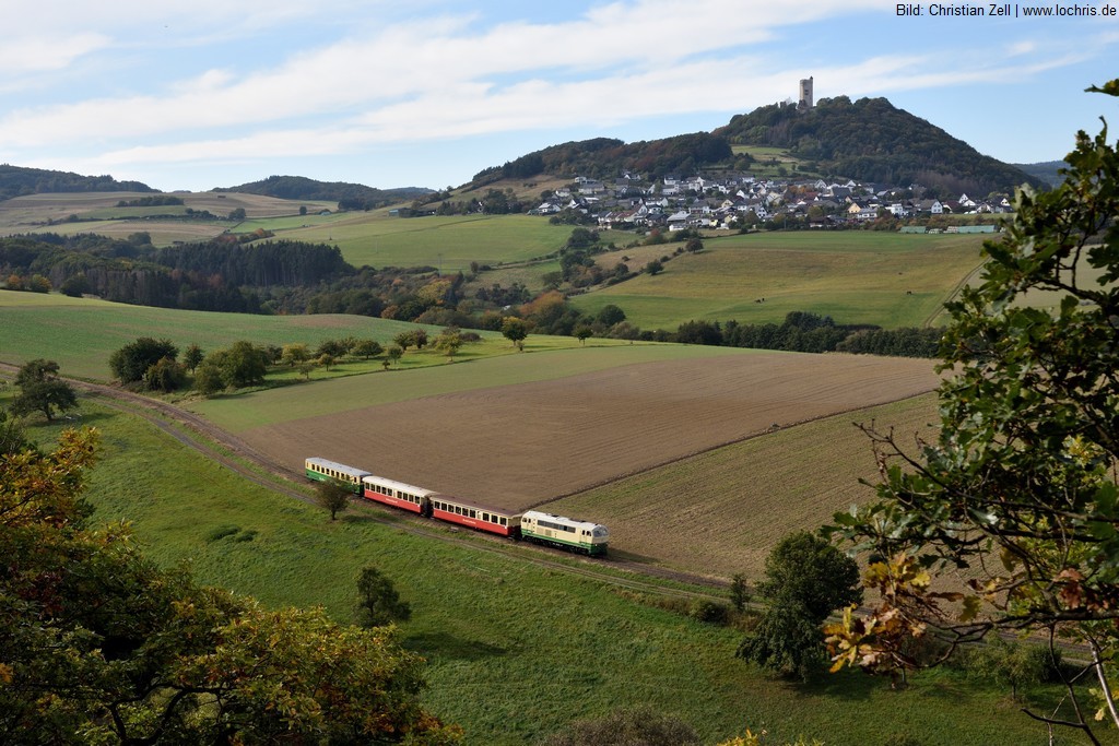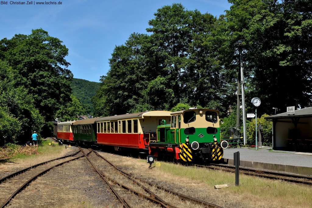 Die klassischen Ausflugszüge werden von Diesellokomotiven gezogen und verkehren zwischen den Bahnhöfen Brohl B.E. (Brohltal-Eisenbahn) und Engeln.