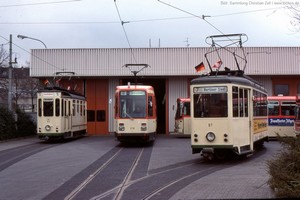 Die drei Museumswagen der Mainzer Straßenbahn sind seit 2018 abgestellt, da sie nicht mit der geänderten Netzspannung fahren. Ein Umbau ist geplant, aber langwierig.