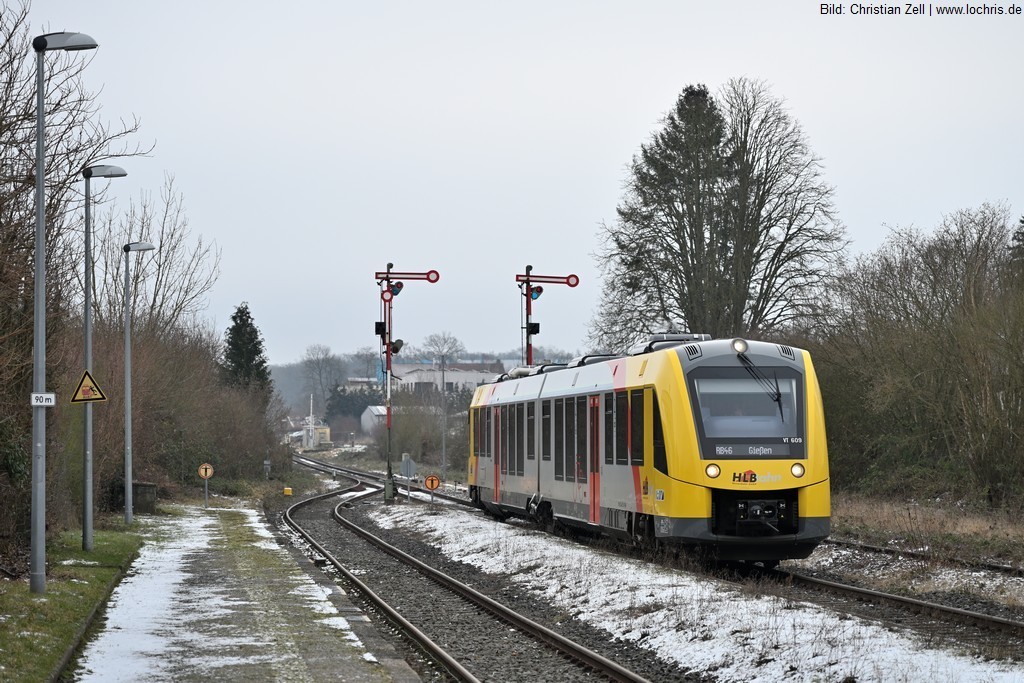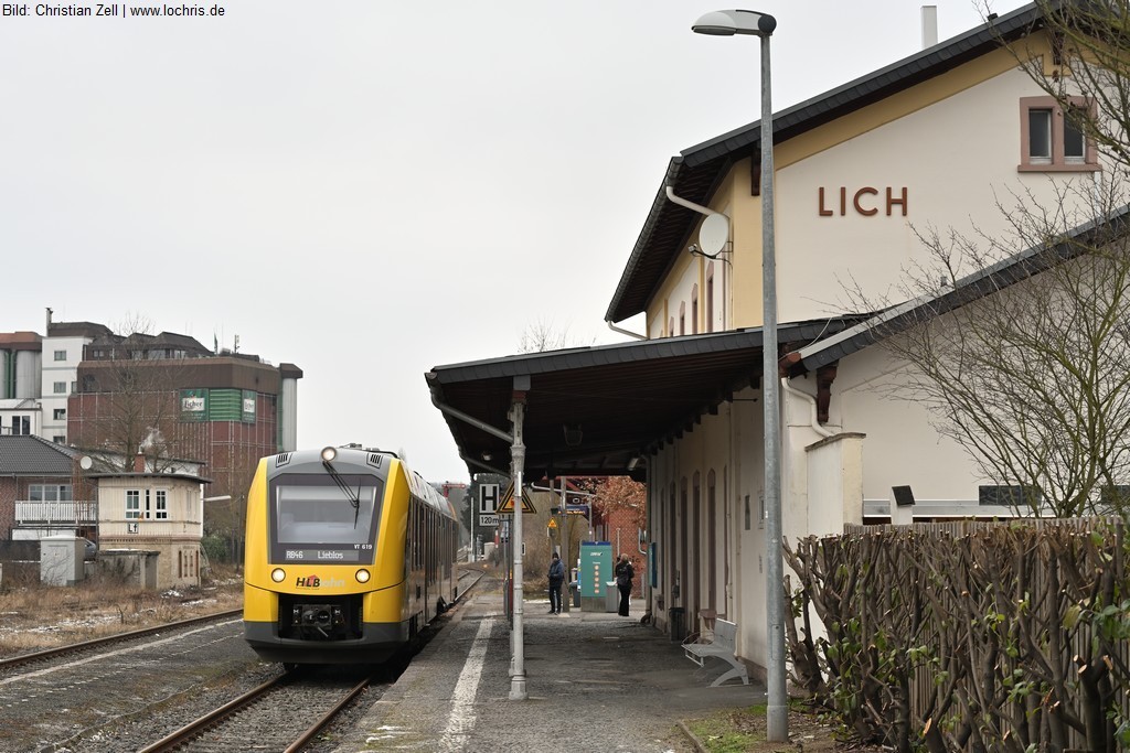 Ehemals Bahnknoten mit Verbindungen nach Beienheim und Mücke, heute nur Durchgangsbahnhof.