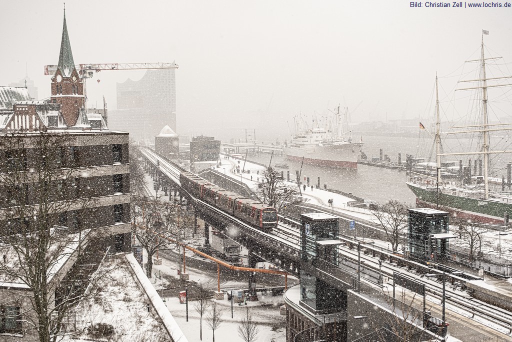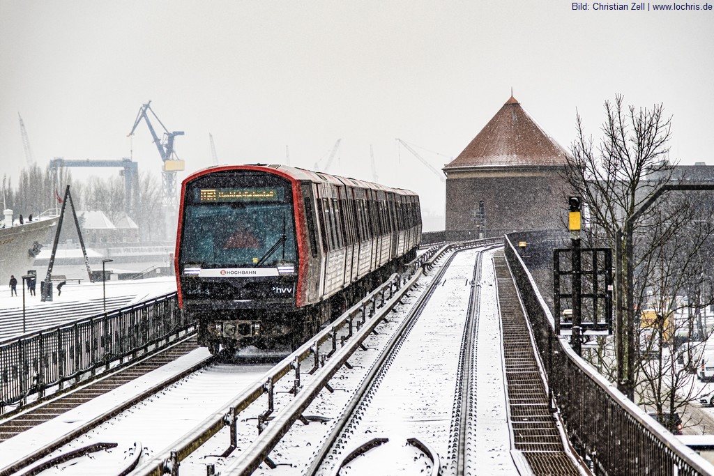 Der bekannteste Abschnitt der U3 ist die Hochbahn entlang des Hafens.
