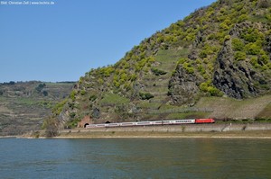 Traditionell fahren die meisten Fernverkehrszüge auf der linken Rheinseite, rechts verkehrten nur wenige saisonale InterCitys. Bei Bauarbeiten kommt es aber gelegentlich zu Umleiterverkehr.
