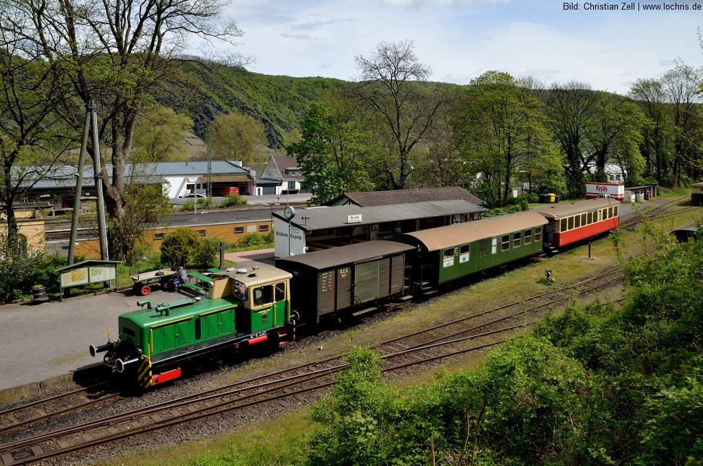 Der Bahnhof der Brohltal-Eisenbahn liegt direkt oberhalb des DB-Bahnhofs Brohl.