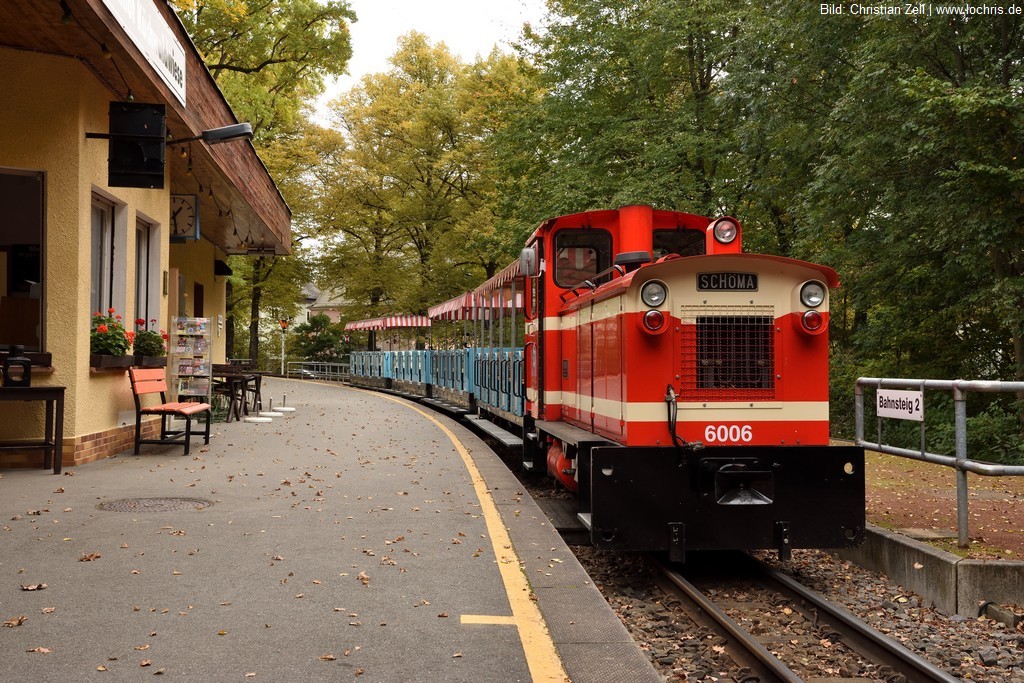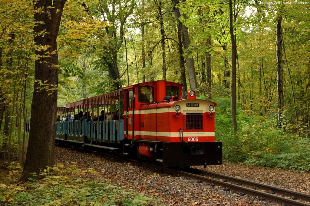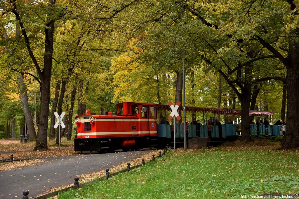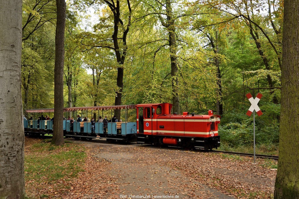 Die Parkeisenbahn verkehrt auf einem 2,3 Kilometer langen Rundkurs der Spurweite 600mm.